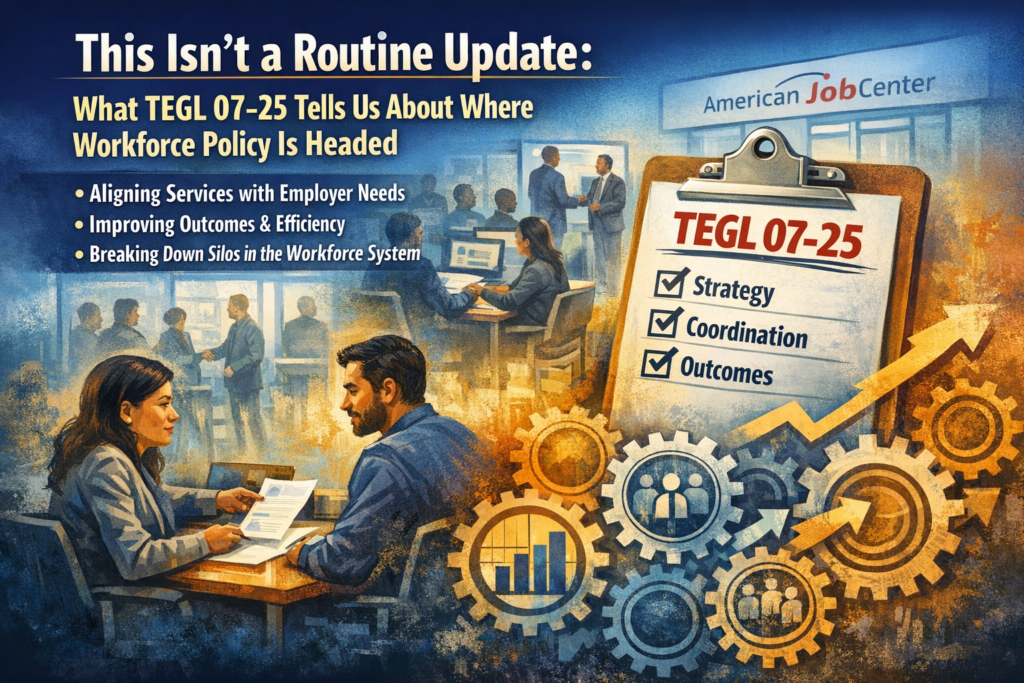 If you work on the front lines of the workforce system—career services, case management, business services, intake, training coordination—TEGL 07-25 probably didn’t land on your desk. And that’s normal. Training and Employment Guidance Letters are written to states, not to individual staff.